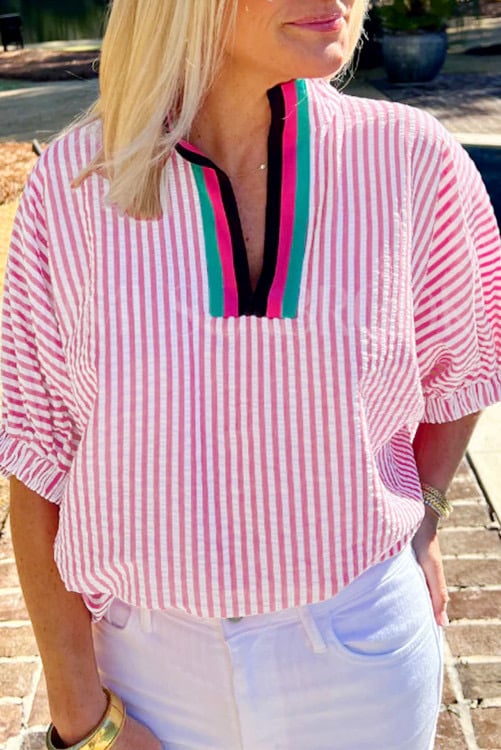 Pink stripped seersucker top